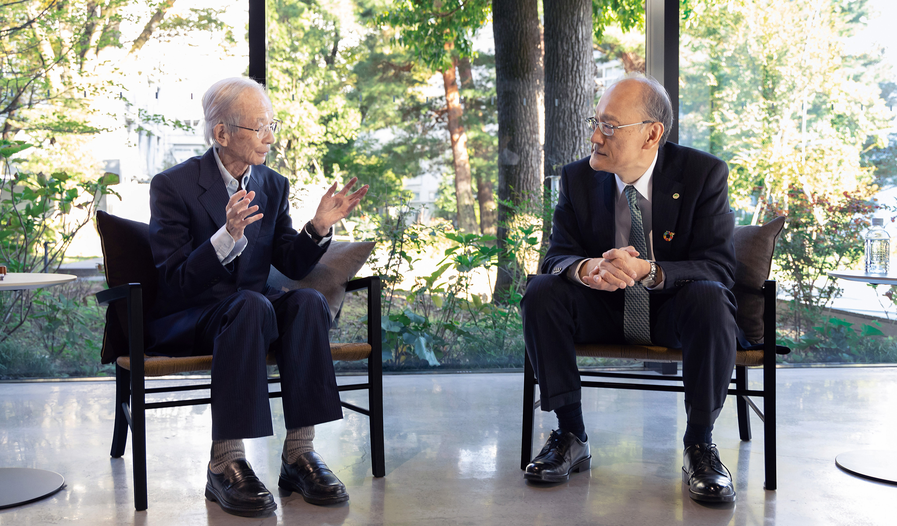 日立総合計画研究所(以下、日立総研)の創立50周年記念として野中郁次郎 一橋大学名誉教授をお迎えし、新しい価値を創造する自己変革組織の在り方について伺いました。野中先生はベストセラー『失敗の本質』や、組織的イノベーションのプロセスを理論化した『知識創造企業(邦題)』をはじめ、数多くの名著を記した経営学の大家です。野中先生が提唱されてきた「SECIモデル」をはじめとした経営理論と、日立の経営ビジョンや事業戦略を踏まえながら、知識創造の在り方や、グローバル競争を勝ち抜くために何をすべきかについて議論します。(聞き手は、日立総研会長の鈴木教洋が担当)