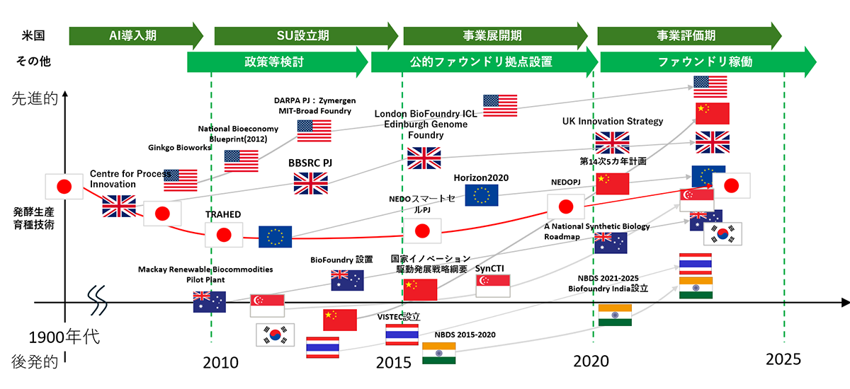 また、最近ではインドがこの分野を強化する方針を示しており、急速にバイオものづくりに関する研究開発を進めている。