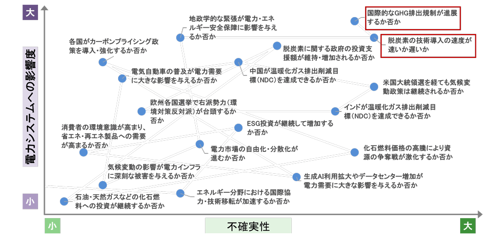 図12 エネルギートランジションのグローバルシナリオの決定因子(日立総研作成)