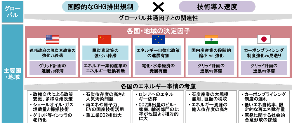 図4 主要国・地域のシナリオの決定因子(日立総研作成)