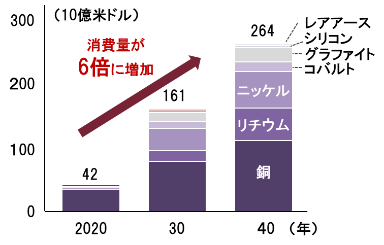 図2 ネットゼロに向けた重要鉱物資源の消費量増加