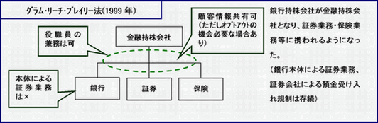 このうち、(1)については、例えば金融機関の人的経営資源の効率化(2008年3月4日国会に提出済み)、(2)については法人客に対する質の高い総合金融サービスの提供が期待されています。