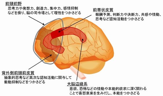 また、金銭に関わる意思決定を行う人が専門家から助言を受けると、たとえそれらが道理にかなわない場合においても、判断や思考を担うはずの「前帯状皮質」と「背外側前頭前皮質」が活性化せず、しばしば活動停止さえするという実験結果*2もあります。つまり、与えられた情報が専門家からもたらされたと分かるやいなや、自分自身で考えることを放棄しているのです。これは、"どのような情報か"ではなく"誰からの情報か"に意思決定が大きく左右されることを示しています。以上の例は、個々人が必ずしも合理的なホモ・エコノミスト(経済人)ではなく、感情や権威などに心理的影響を大きく受けて経済活動を行っていることを示唆しています。これは、行動経済学における主張を神経経済学によって裏付けていることにほかなりません。