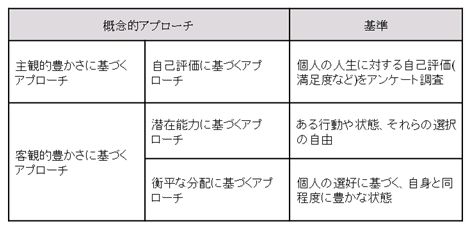 表2 現在の豊かさを測定する概念的アプローチ