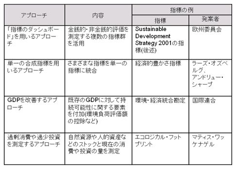 表3 持続可能性を測定するアプローチ