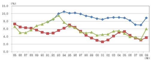 両国の失業率を見てみると、EU平均と比べても低く推移しており、両国の労働市場の柔軟さと労働者保護を反映しているものとみられます。