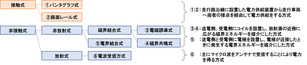 方式 | 接触式-可動アーム式 | 接触式-パンタグラフ式 | 非接触式-磁界結合式 | 非接触式-磁界結合式 | 非接触式-磁界結合式 |